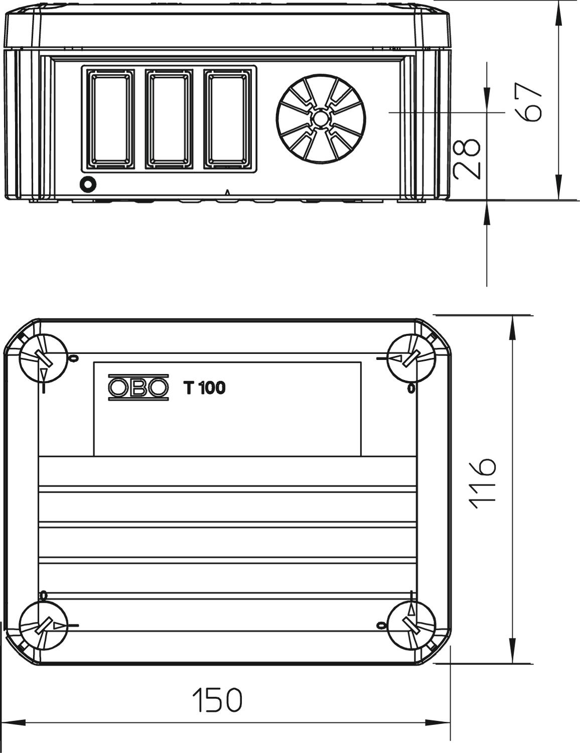 Bezhalogénový áno CO2 stopa (GWP) od kolísky po bránu 0,5886 kg CO2e / 1 Kus Dĺžka 150 mm Druh vyhotovenia telesa Vylamovací otvor Druh zavedenia Vstupy s odlehčením tahu umožňující přímý průraz, pro kabely o průměru 7–21 mm Farba svetlosivá; RAL 7035 Forma pravouhlý Materiál Polypropylén Menovité izolačné napätie Ui 500 V Menovité napätie 500 V Menovitý prierez min. 2,5 mm² Možnosť montáže vedľa seba áno Odolne voči poveternostným vplyvom nie ohňovzdorný podľa VDE 0471/DIN 695 časť 2-1, skúšobná teplota 650°C Osadenie Ostatné Počet vstupov káblov 4 pre zónu Ex bez pre zónu Ex plyn bez pre zónu Ex prach bez Priehľadné veko nie Rozmer 150x116x67 S možnosťou zaplombovania áno S tienením nie S vekom áno Šírka 116 mm Skúšané pre prostredie s nebezpečenstvom výbuchu nie Spôsob montáže Nástenná/stropná montáž Stupeň krytia IP20 Svetlé vnútorné rozmery 136x102x57 mm Teplotný rozsah použitia max. 60 °C Teplotný rozsah použitia min. -5 °C Upevnenie veka priskrutkované Veko nepriehľadná Výška 67 mm Zachovanie funkčnosti bez Zavedenie zozadu áno - Všetky typy