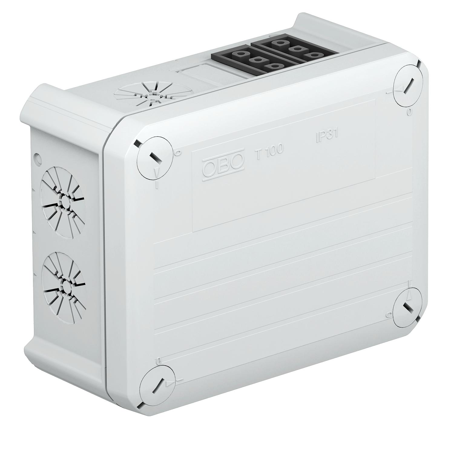 Popis produktuOdbočná krabice se zásuvkami Wieland 1w3p+1s3p k propojení kabelů a vedení v interiéru a chráněném venkovním prostoru. Obdélníkové provedení s otvory k vyražení po stranách a ve dně. Vhodná pro montáž na stěnu či strop a k montáži na montážní plechy. S možností vnitřního upevnění a montáže pomocí rohových nálitků. Víko s rychlouzávěrem, možnost zaplombování. Vyrobeno z bezhalogenových materiálů stabilizovaných proti ultrafialovému záření.