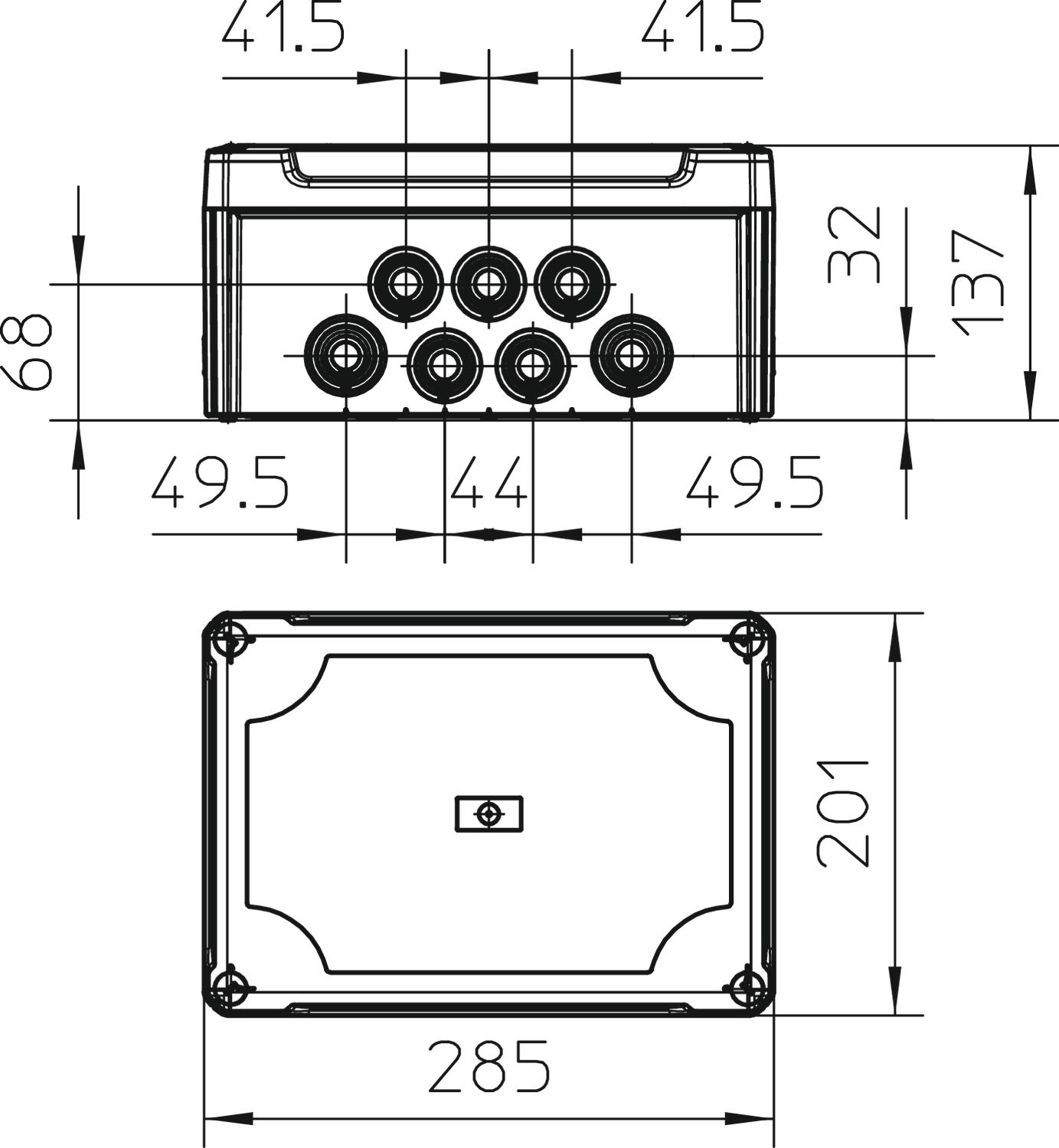 Popis produktuOdbočná krabice k propojení kabelů a vedení v interiéru a chráněném venkovním prostoru. Obdélníkové provedení s násuvnými těsnicími průchodkami. Vhodná pro montáž na stěnu či strop, k montáži na montážní plechy a závit ve dně. S možností vnitřního upevnění a montáže pomocí rohových nálitků. Vysoké víko s rychlouzávěrem, možnost zaplombování. Vyrobeno z bezhalogenových materiálů stabilizovaných proti ultrafialovému záření.