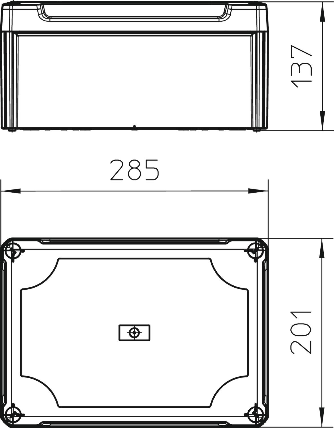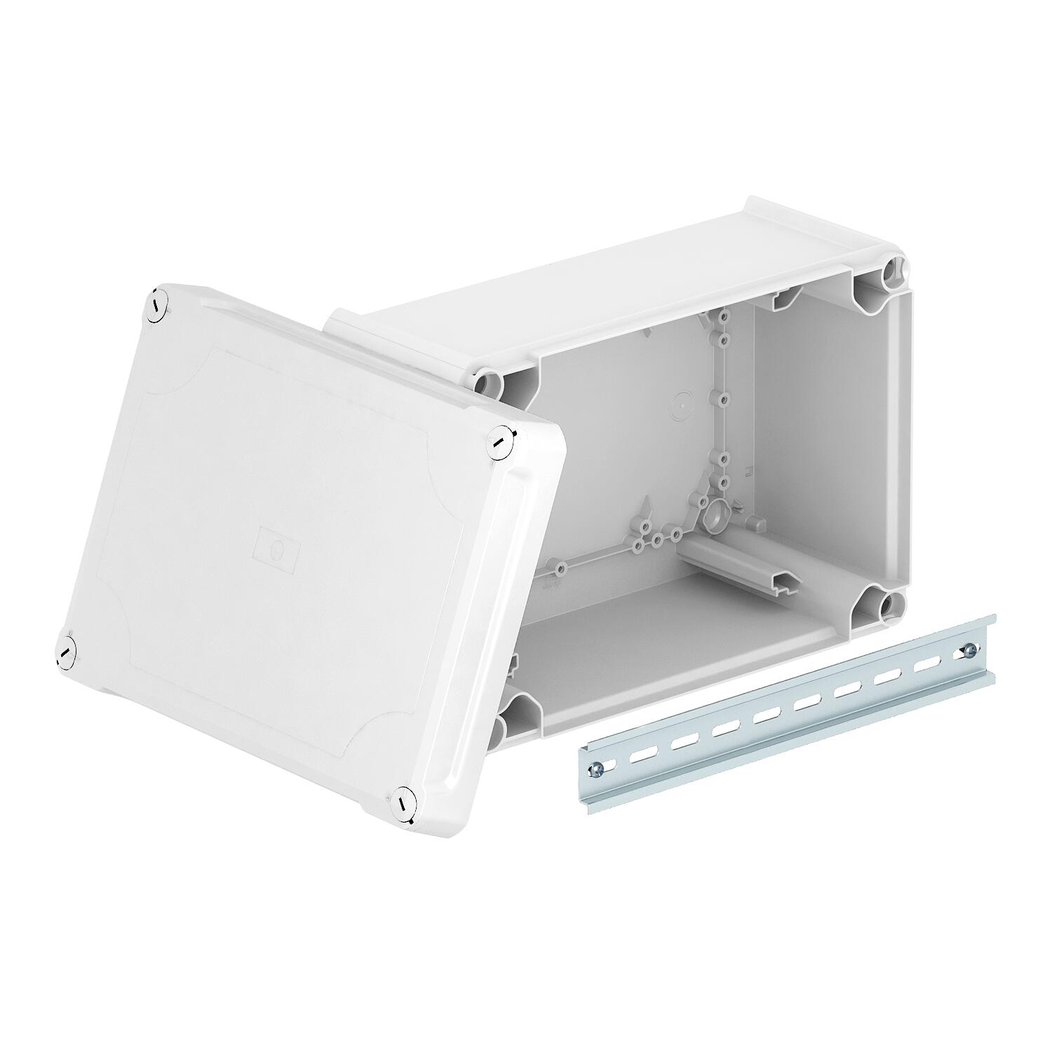 Popis produktuUzavřená odbočná krabice k propojení kabelů a vedení v interiéru a chráněném venkovním prostoru. Obdélníkový tvar bez vývodů. Vhodná pro montáž na stěnu či strop, k montáži na montážní plechy a závit ve dně. S možností vnitřního upevnění a montáže pomocí rohových nálitků. Vysoké víko s rychlouzávěrem, možnost zaplombování. Vyrobeno z bezhalogenových materiálů stabilizovaných proti ultrafialovému záření.