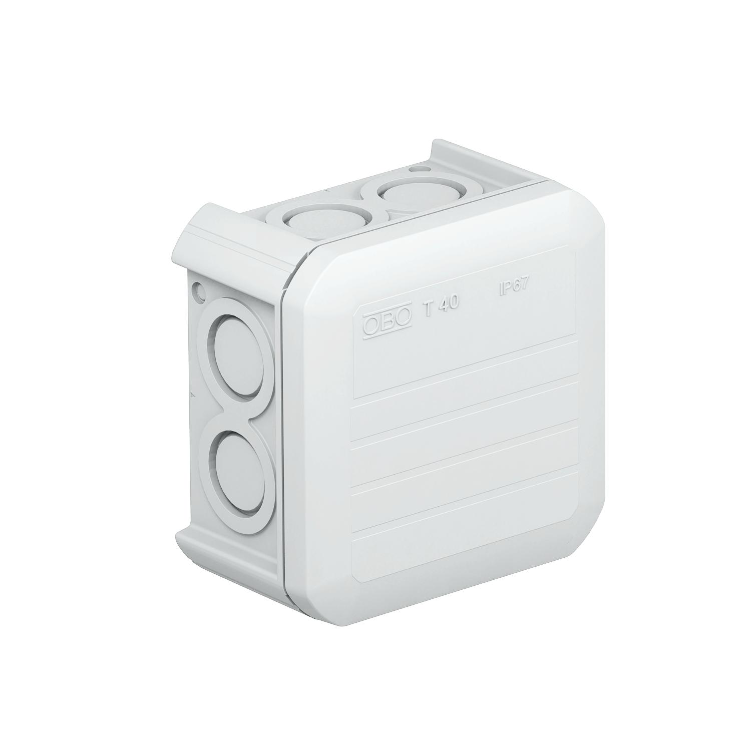 Popis produktuOdbočná krabice k propojení kabelů a vedení v interiéru a chráněném venkovním prostoru. Čtvercové provedení s otvory k vyražení po stranách a ve dně. Vhodná pro montáž na stěnu či strop a k montáži na montážní plechy. S možností vnitřního upevnění a montáže pomocí rohových nálitků. S pevně usazeným svěrným víkem. Vyrobeno z bezhalogenových materiálů stabilizovaných proti ultrafialovému záření. Odbočná krabice podle EN 60670. Odolnost proti šíření plamene podle EN 60695-2-11, zkušební teplota 650 °C. Rázová odolnost IK07 podle EN 50102.