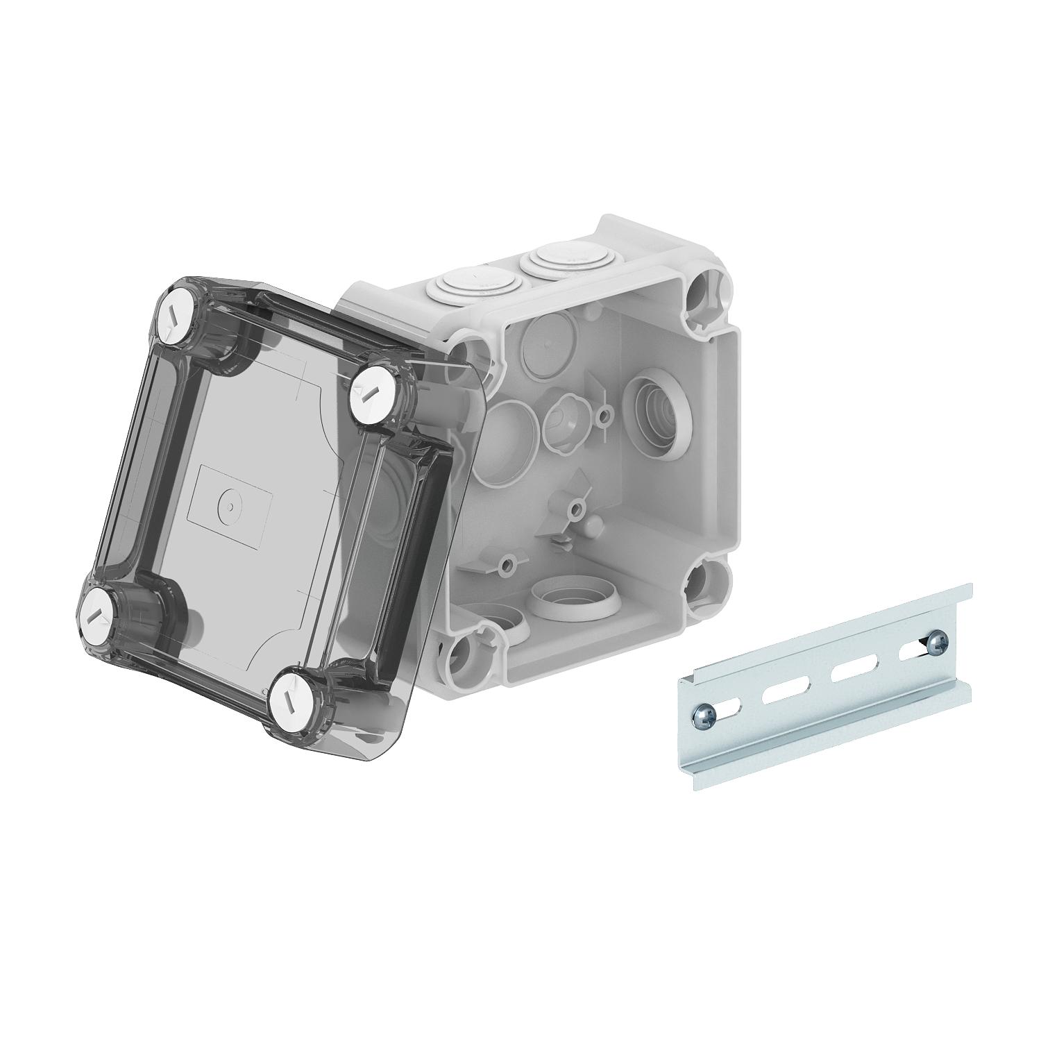 Popis produktuOdbočná krabice k propojení kabelů a vedení v interiéru a chráněném venkovním prostoru. Čtvercové provedení s násuvnými těsnicími průchodkami po stranách a otvory k vyražení ve dně. Vhodná pro montáž na stěnu či strop a k montáži na montážní plechy. S možností vnitřního upevnění a montáže pomocí rohových nálitků. Vysoké transparentní víko s rychlouzávěrem, možnost zaplombování. Vyrobeno z bezhalogenových materiálů stabilizovaných proti ultrafialovému záření.