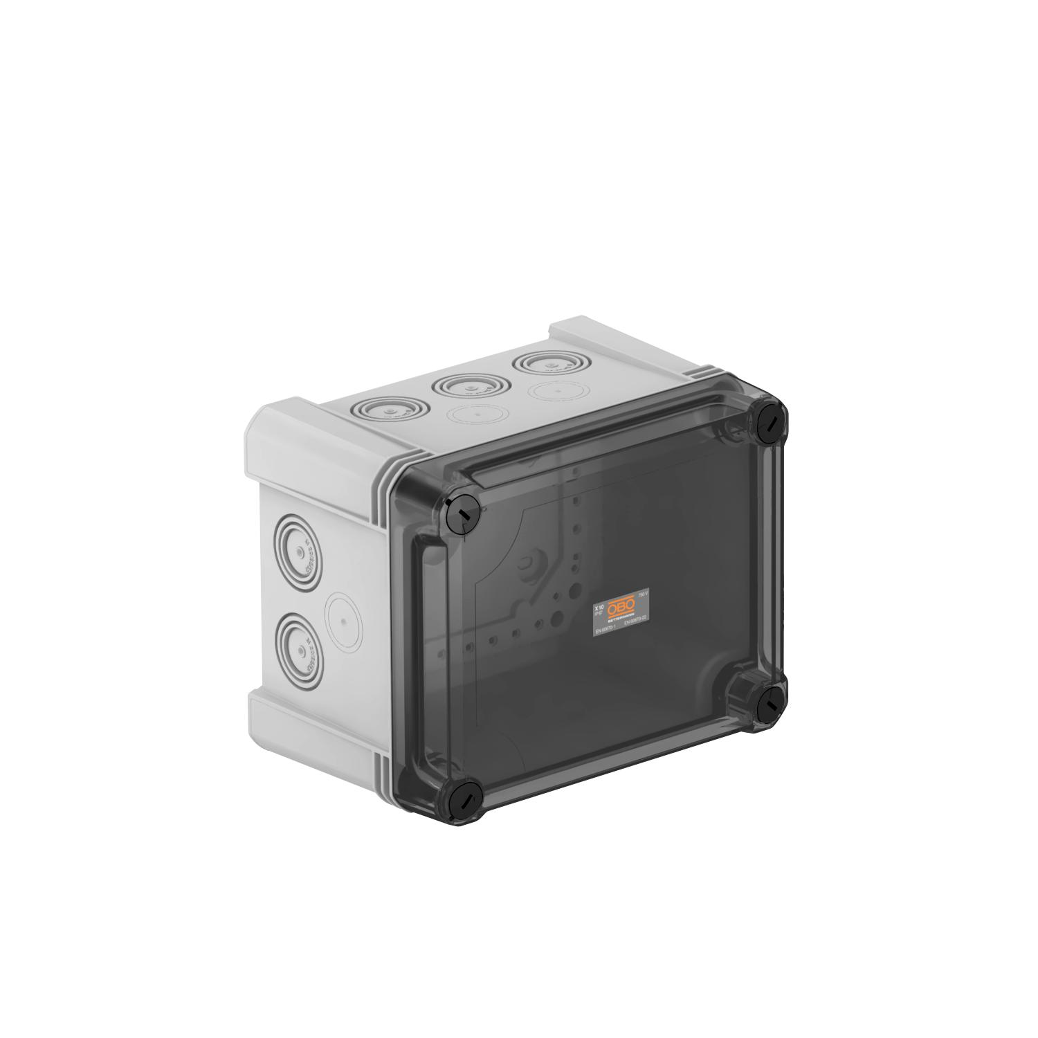 Popis produktuOdbočná krabice k propojení kabelů a vedení v interiéru a venkovním prostoru. Obdélníkové provedení s otvory k vyražení. Vhodná pro montáž na stěnu/strop s možností vnějšího upevnění, vnitřního upevnění nebo montáže pomocí rohových nálitků. Obzvláště odolná proti rázům s IK09. Transparentní víko s rychlouzávěrem, možnost zaplombování. Vyrobena z bezhalogenových materiálů odolných proti ultrafialovému záření.