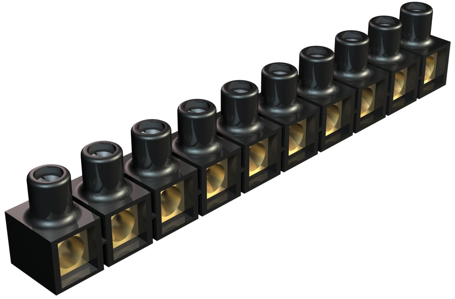Popis produktuSvorky z mosazi, šrouby z oceli, galvanicky zinkované a transparentně pasivované, 10pólová, po jednotlivých svorkách oddělitelná lišta, oboustranně otevřená.