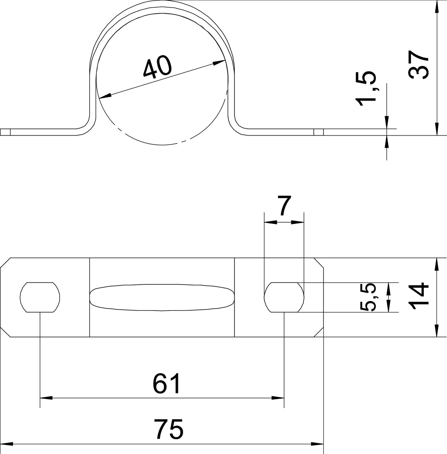 Bezhalogénový áno CO2 stopa (GWP) od kolísky po bránu 0,1382 kg CO2e / 1 Kus Dĺžka 75 mm Hrúbka materiálu 1,5 mm Materiál Ušľachtilá oceľ, nehrdzavejúca 1.4571 Menovitý priemer 40 mm Odolné voči UV áno Počet káblov/rúr 1 Potiahnuté plastom nie Povrch lesklá, dodatočne upravená pre priemer 40 Rozmer 40mm Rozmer A 75 mm Rozmer B 61 mm Rozmer b 14 mm Rozmer d 5,5 mm Rozmer D 40 mm Rozmer E 7 mm Rozmer H 37 mm Rozmer t 1,5 mm Šírka 14 mm Spôsob upevnenia Otvor na skrutku Veľkosť otvoru 5,5 x 7 mm Vhodné v oblasti protipožiarnej ochrany nie Vyhotovenie dvojstranný Výška 37 mm Vzdialenosť od steny nie - Všetky typy