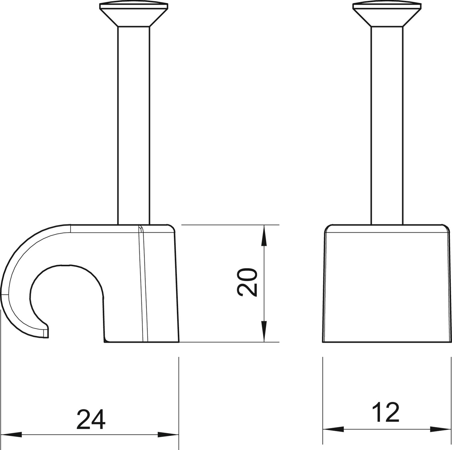 aretácia rúrky nie Bezhalogénový nie CO2 stopa (GWP) od kolísky po bránu 0,0111 kg CO2e / 1 Kus Dĺžka 24 mm Dvojitá príchytka nie Farba prírodná Forma pravouhlý (pre ploché vedenie) Materiál Polypropylén Nárazuvzdorný nie pre priemer kábla max. 19 mm pre priemer kábla min. 16 mm pre priemer klinca 2,5 x 40 Rozmer 16-19mm, L40 Rozmer B 12 mm Rozmer H 20 mm Rozmer L 24 mm S klincom áno Šírka 12 mm tvrdený áno Výška 20 mm - Všetky typy