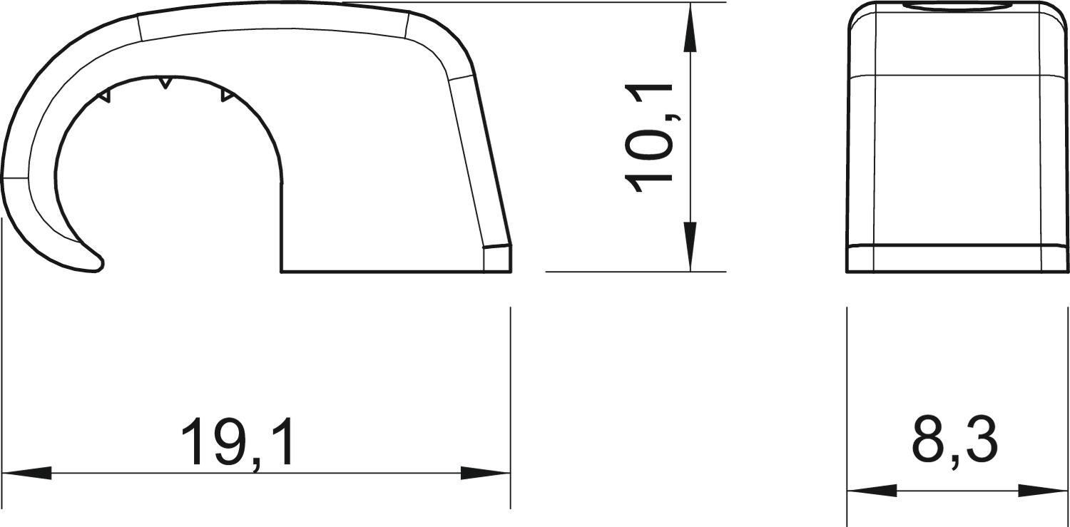 aretácia rúrky nie Bezhalogénový áno CO2 stopa (GWP) od kolísky po bránu 0,0022 kg CO2e / 1 Kus Dvojitá príchytka nie Farba svetlosivá; RAL 7035 Forma oblý (pre vedenie kruhového prierezu) Materiál Polypropylén Nárazuvzdorný áno pre priemer kábla max. 12 mm pre priemer kábla min. 7 mm pre priemer klinca 2 Rozmer 7-12mm Rozmer B 8,3 mm Rozmer H 10,1 mm Rozmer L 19,1 mm S klincom nie tvrdený nie - Všetky typy