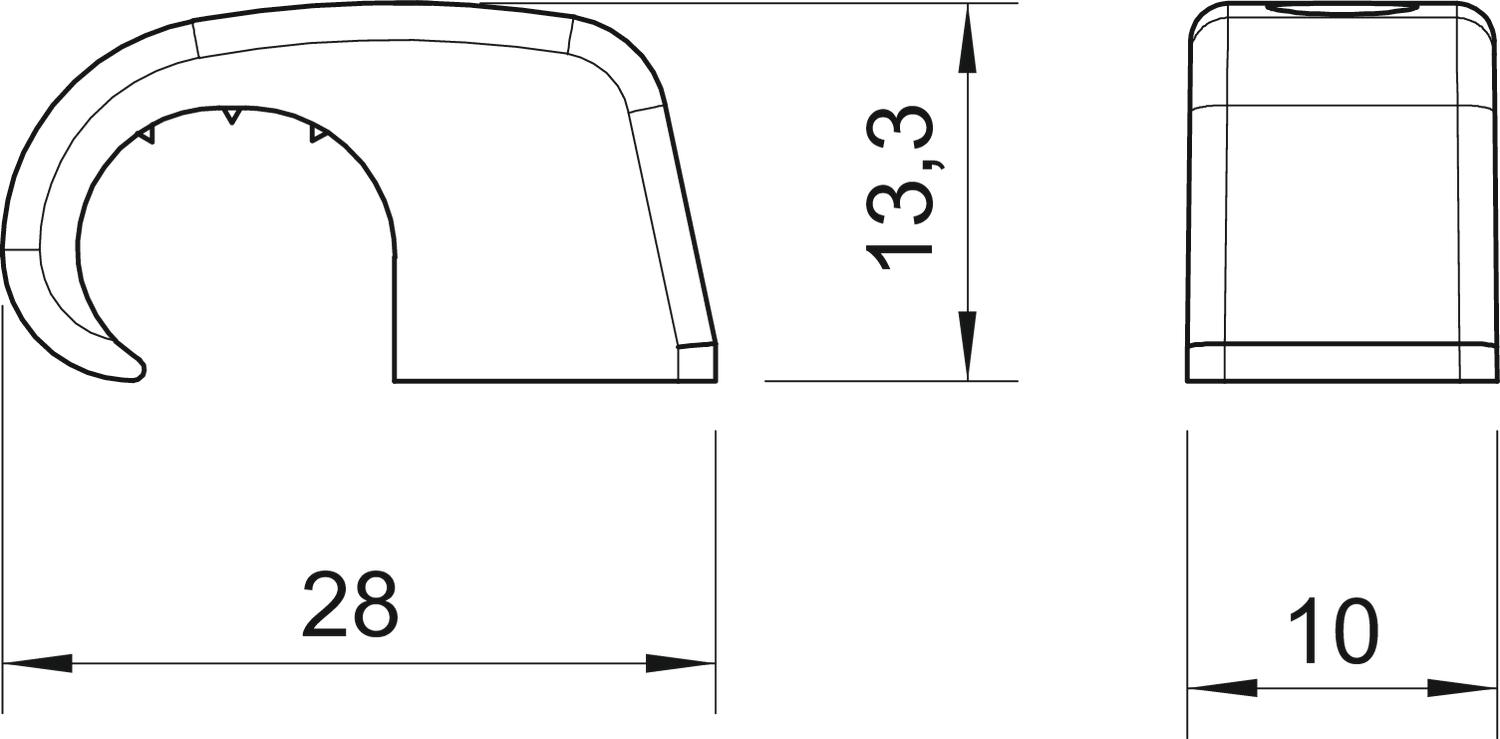 aretácia rúrky nie Bezhalogénový áno CO2 stopa (GWP) od kolísky po bránu 0,0045 kg CO2e / 1 Kus Dvojitá príchytka nie Farba svetlosivá; RAL 7035 Forma oblý (pre vedenie kruhového prierezu) Materiál Polypropylén Nárazuvzdorný áno pre priemer kábla max. 14 mm pre priemer kábla min. 10 mm pre priemer klinca 2 Rozmer 10-14mm Rozmer B 10 mm Rozmer H 13,3 mm Rozmer L 28 mm S klincom nie tvrdený nie - Všetky typy