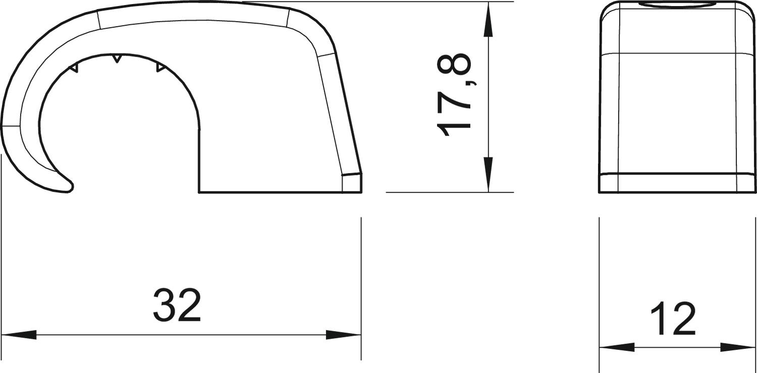 aretácia rúrky nie Bezhalogénový áno CO2 stopa (GWP) od kolísky po bránu 0,0071 kg CO2e / 1 Kus Dvojitá príchytka nie Farba svetlosivá; RAL 7035 Forma oblý (pre vedenie kruhového prierezu) Materiál Polypropylén Nárazuvzdorný áno pre priemer kábla max. 17 mm pre priemer kábla min. 14 mm pre priemer klinca 2 Rozmer 14-17mm Rozmer B 12 mm Rozmer H 17,8 mm Rozmer H1 32 mm Rozmer L 32 mm S klincom nie tvrdený nie - Všetky typy