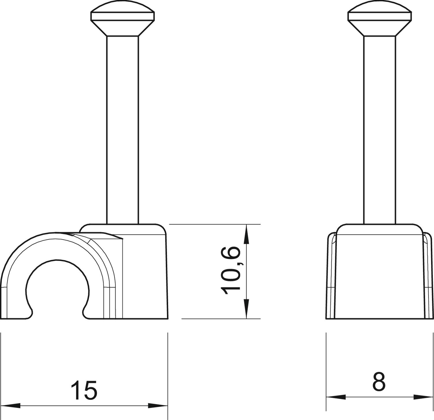 aretácia rúrky nie Bezhalogénový áno CO2 stopa (GWP) od kolísky po bránu 0,0037 kg CO2e / 1 Kus Dĺžka klinca 35 mm Dvojitá príchytka nie Farba svetlosivá; RAL 7035 Forma oblý (pre vedenie kruhového prierezu) Materiál Polypropylén Nárazuvzdorný nie pre priemer kábla 8 mm pre priemer klinca 2,0x25 priehľadná nie Rozmer 8mm, L35 Rozmer B 8 mm Rozmer H 10,6 mm Rozmer L 15 mm S klincom áno tvrdený áno - Všetky typy