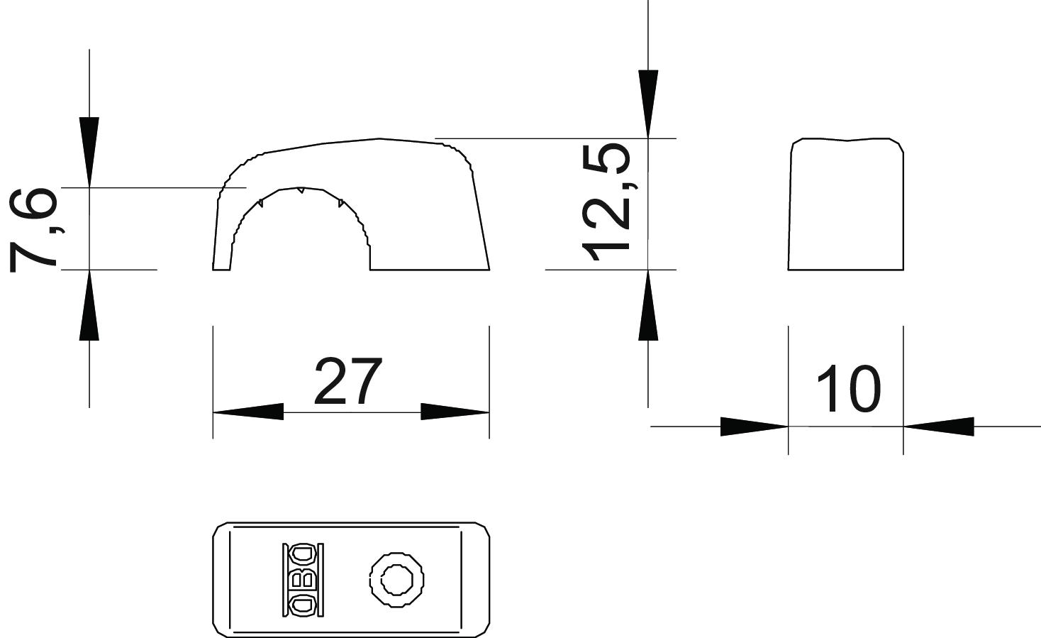 aretácia rúrky nie Bezhalogénový áno CO2 stopa (GWP) od kolísky po bránu 0,0044 kg CO2e / 1 Kus Dvojitá príchytka nie Farba svetlosivá; RAL 7035 Forma oblý (pre vedenie kruhového prierezu) Materiál Polypropylén Nárazuvzdorný nie pre priemer kábla max. 14 mm pre priemer kábla min. 10 mm pre priemer klinca 2,0 Rozmer 10-14mm Rozmer B 10 mm Rozmer H 12,5 mm Rozmer H1 7,6 mm Rozmer L 27 mm S klincom nie tvrdený nie - Všetky typy