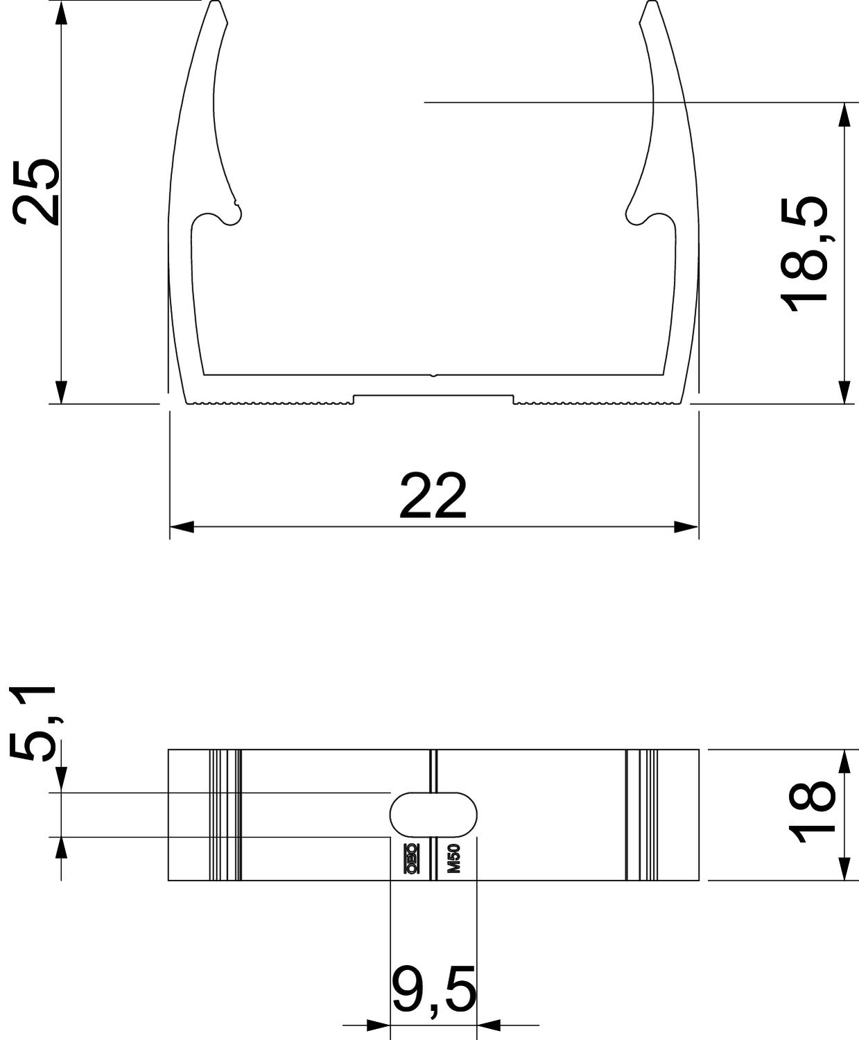 Podélný prolis pro boční vyrovnání při montáži pomocí šroubu do dřeva nebo natloukací hmoždinky.