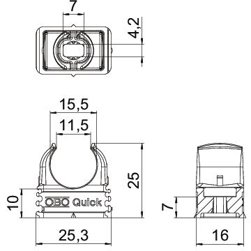 Bezhalogénový áno CO2 stopa (GWP) od kolísky po bránu 0,0114 kg CO2e / 1 Kus Farba kamenná sivá; RAL 7030 Hodnoty pre vytiahnutie 65 N Materiál Polypropylén Menovitá veľkosť/Text M16 Možnosť montáže vedľa seba áno Odolné voči UV nie ohňovzdorný podľa VDE 0471/DIN 695 časť 2-1, skúšobná teplota 750°C Počet káblov/rúr 1 Rozmer M16 Rozmer A 25,3 mm Rozmer B 16 mm Rozmer C 11,5 mm Rozmer D 15,5 mm Rozmer E 7 mm Rozmer F 4,2 mm Rozmer h 10 mm Rozmer H 25 mm S vložkou nie Spôsob upevnenia Otvor na skrutku zatvorené nie - Všetky typy