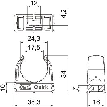 Popis produktuNehorľavá príchytka na omietku na uchytenie metrických oceľových pancierových rúrok, ľahkých a ťažkých izolačných rúrok, ako aj elektroinštalačných rúrok Quick-Pipe. Univerzálne možnosti upevnenia na stenu a strop v interiéri a chránenom exteriéri. S pozdĺžnym otvorom na bočné vyrovnanie pri montáži pomocou skrutky do dreva a alebo natĺkacích hmoždín. Montáž rúrok bez použitia náradia. Možnosť zoradenia do radu aj s príchytkami OBO Quick alebo starQuick. Veľkosť M16 - M32 je možné naskrutkovať na závit M6. Odstup upevnenia 50 - 60 cm, max. hodnoty na vytiahnutie F pri priestorovej teplote 20° C, pozri tabuľku.
