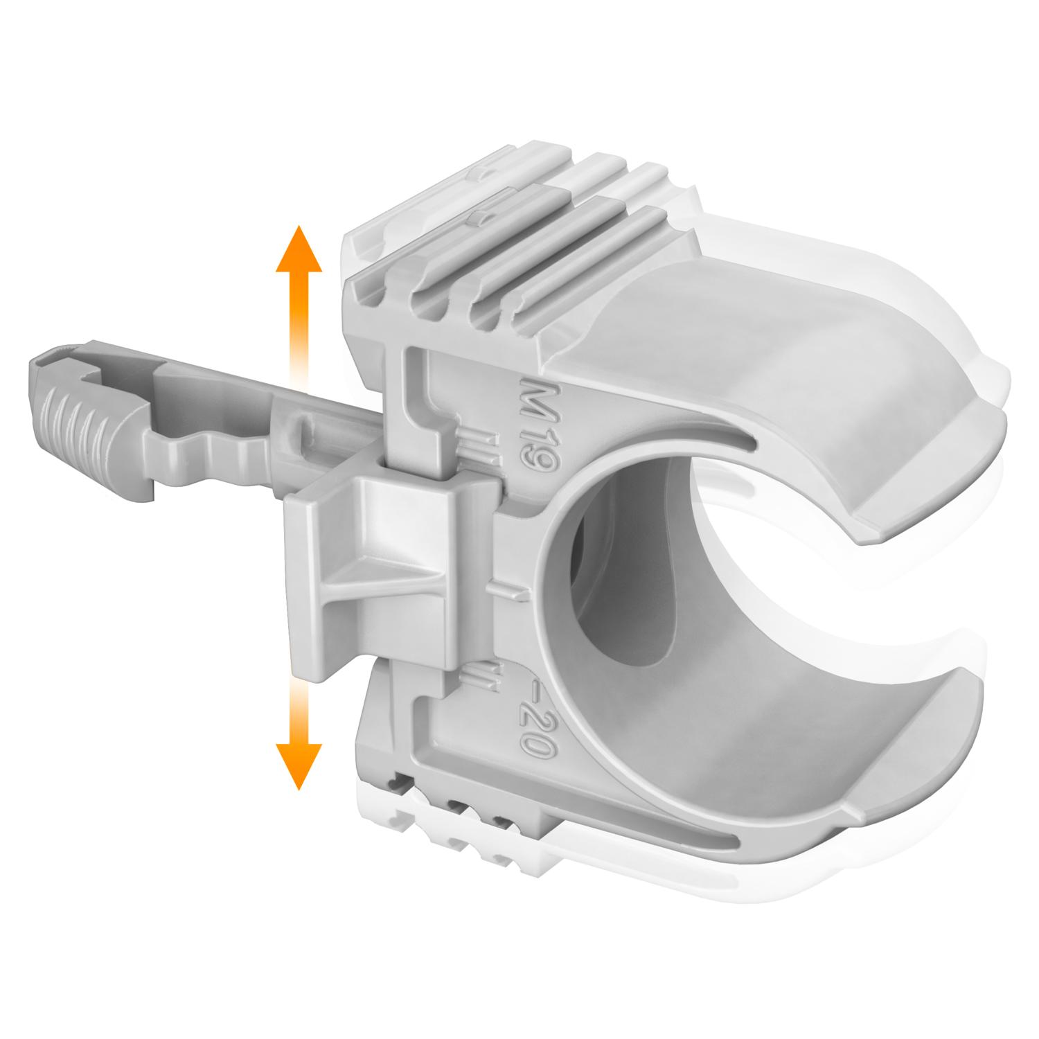 Popis produktuPříchytka na omítku k upevnění metrických pancéřových trubek, lehkých a těžkých izolačních trubek a elektroinstalační trubky Quick-Pipe. Univerzální možnosti upevnění na stěnu a strop v interiéru a v chráněném venkovním prostoru. S podélným prolisem pro boční vyrovnání při montáži pomocí šroubu do dřeva nebo natloukací hmoždinky. Montáž trubek bez použití nástrojů. Řaditelné vedle sebe také s příchytkami OBO Multi-Quick nebo starQuick. Velikost M16 až M32 lze našroubovat na závit M6. Vzdálenost upevnění 50 až 60 cm, max. vytahovací hodnoty F při teplotě 20 °C viz tabulku.