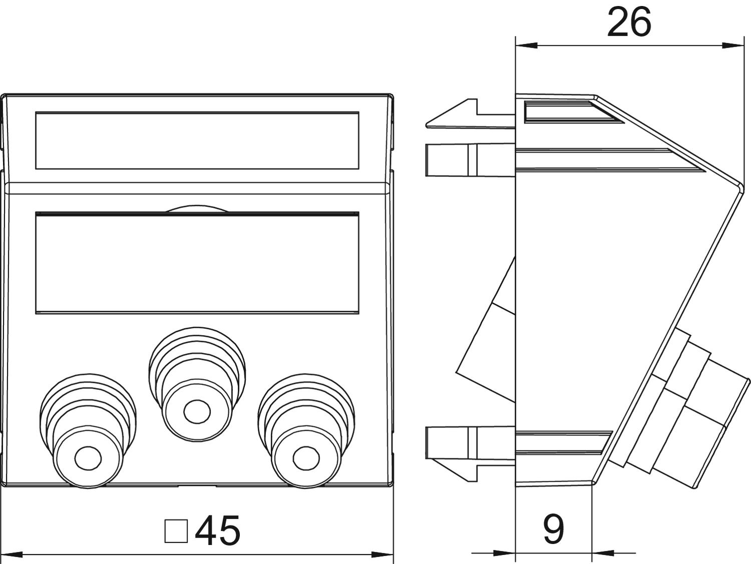 Popis produktuMultimediální nosič se třemi zdířkami cinch pro komponentní video, šikmý vývod kabelů, s popisovým polem, tři zdířky cinch (RCA) s pájecím přívodem, barevné kódování: červená/zelená/modrá. Nosná deska upevňovaná naklapnutím, vhodná pro vodorovnou i svislou montáž do systémového prostředí.