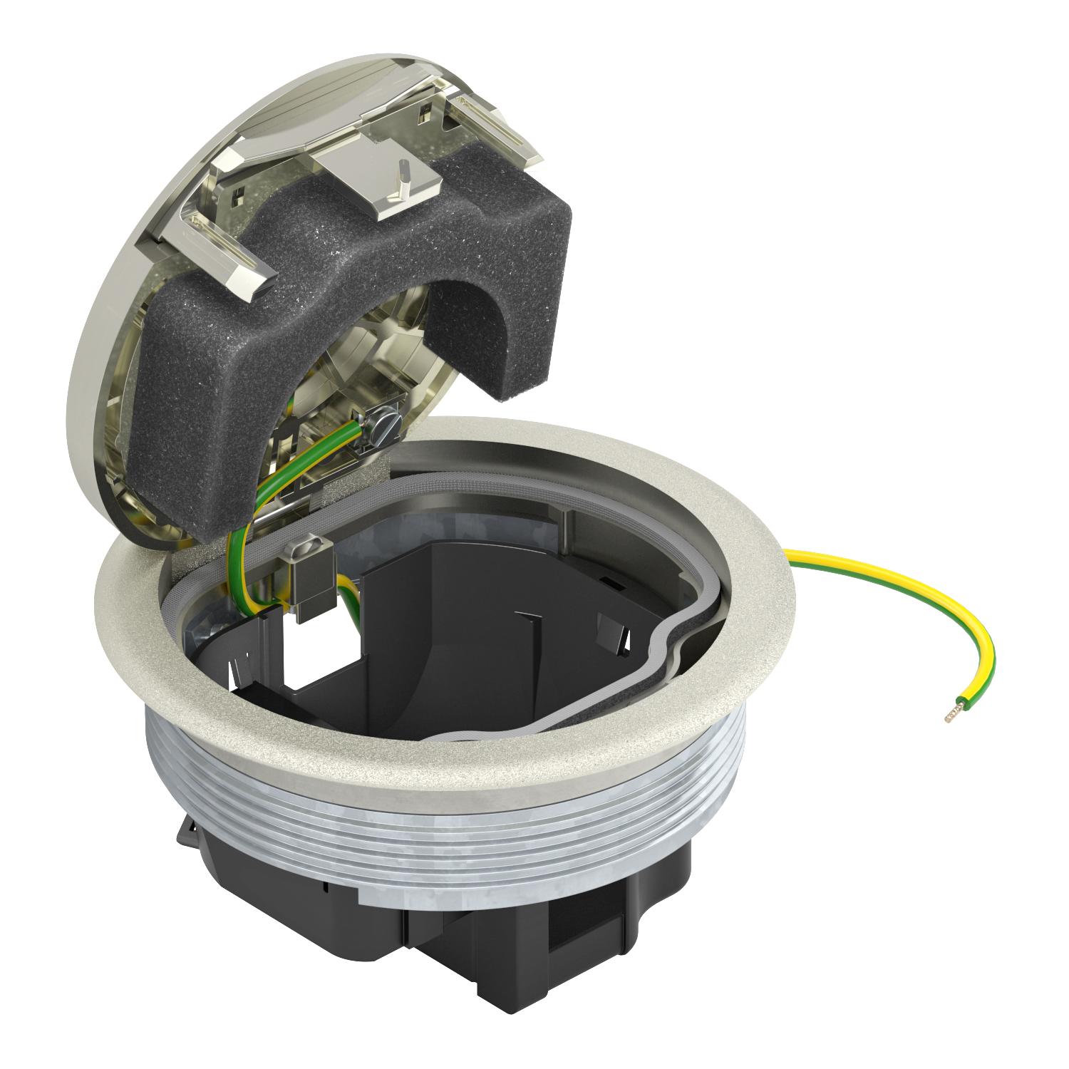 Popis produktuKruhová vestavná jednotka s ochranným rámem pro podlahovou krytinu pro přímou montáž do připojovací krabice UDL2-120 v interiéru. V uzavřeném stavu lze vestavnou jednotku udržovat namokro. Minimální vestavná hloubka činí 70 mm.