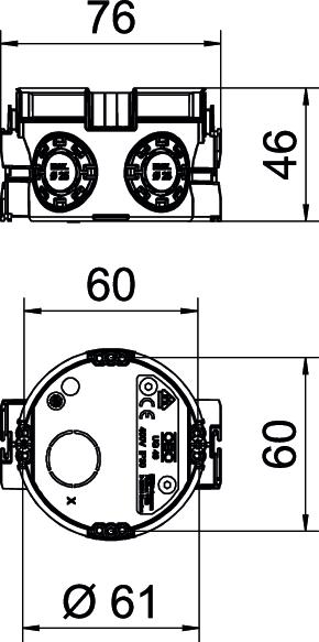 Popis produktuPřístrojová krabice pod omítku pro použití ve zdivu s montážní hloubkou nejméně 46 mm.