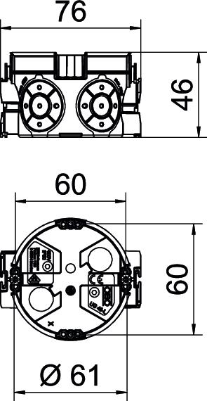 Popis produktuPřístrojová krabice pod omítku se vzduchotěsnými membránovými vývody, pro použití ve zdivu s montážní hloubkou nejméně 46 mm.