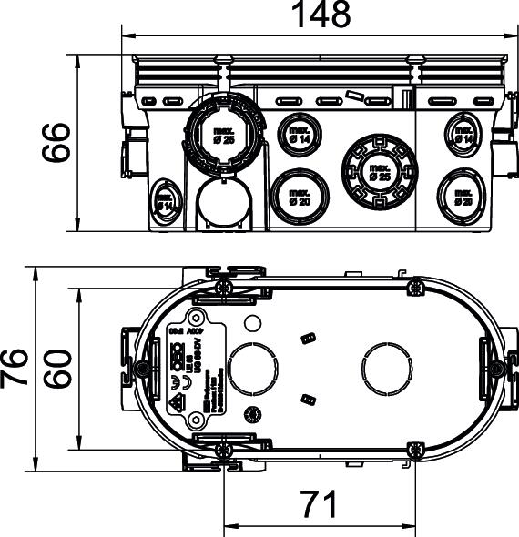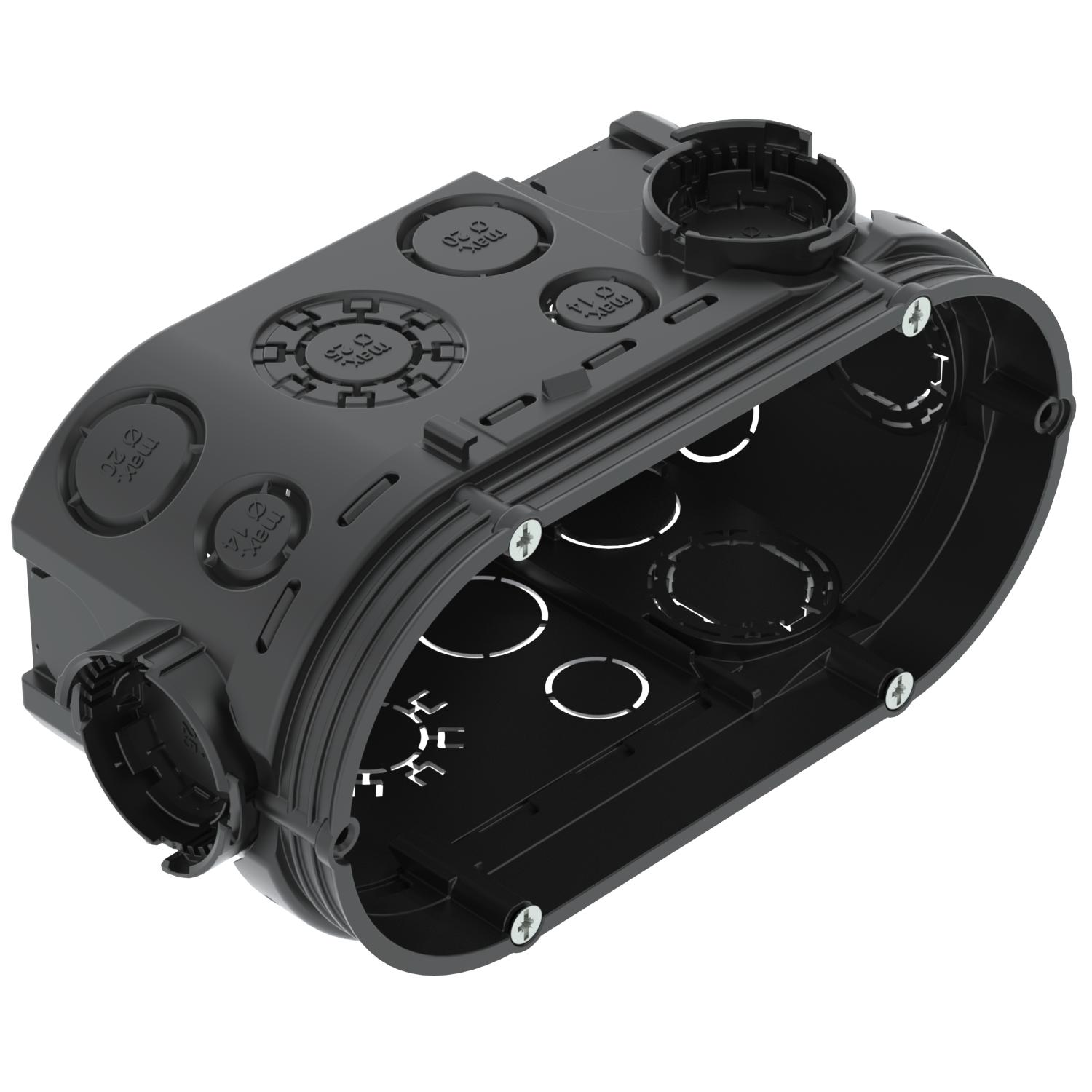 Popis produktuDvojitá přístrojová krabice pod omítku pro použití ve zdivu s montážní hloubkou nejméně 66 mm.
