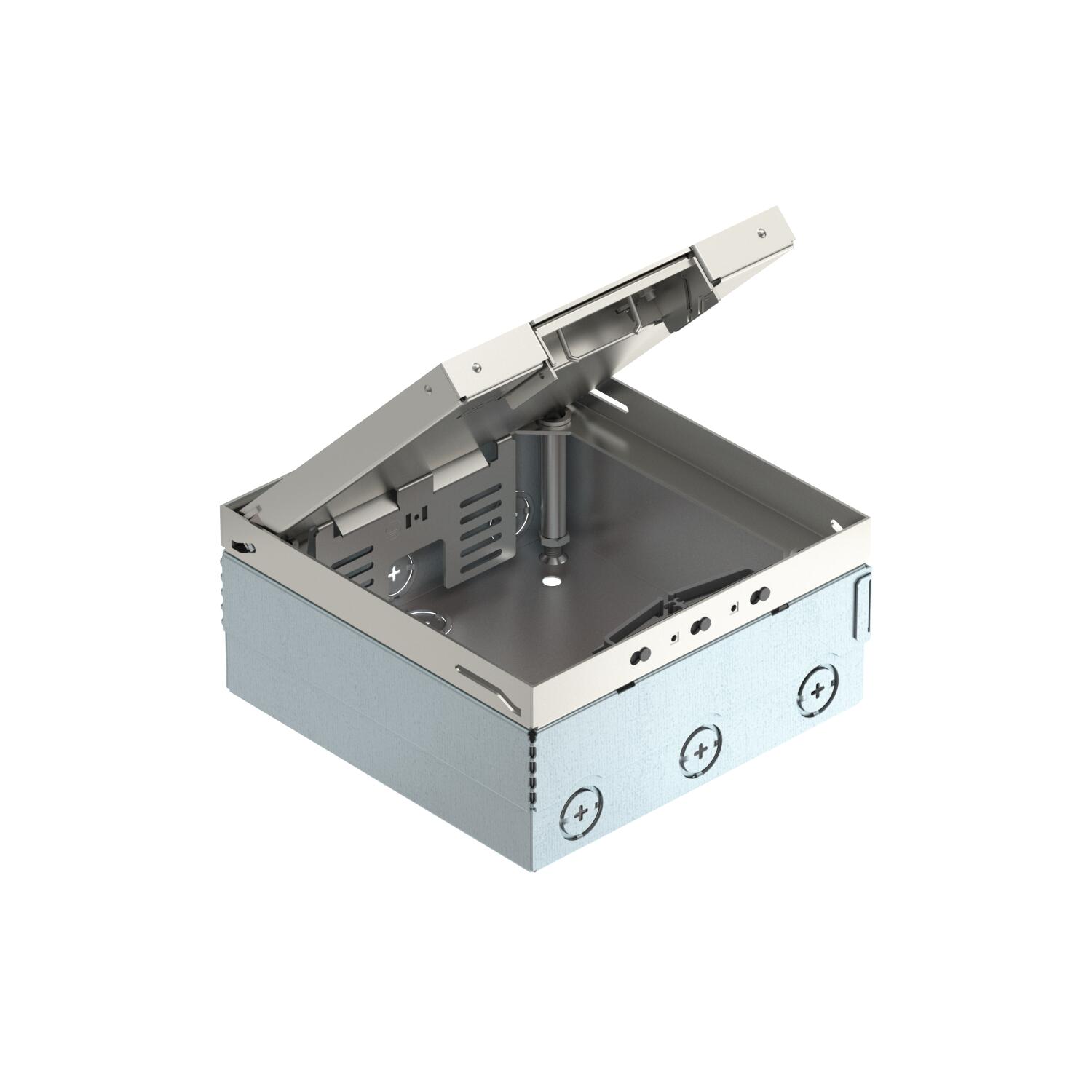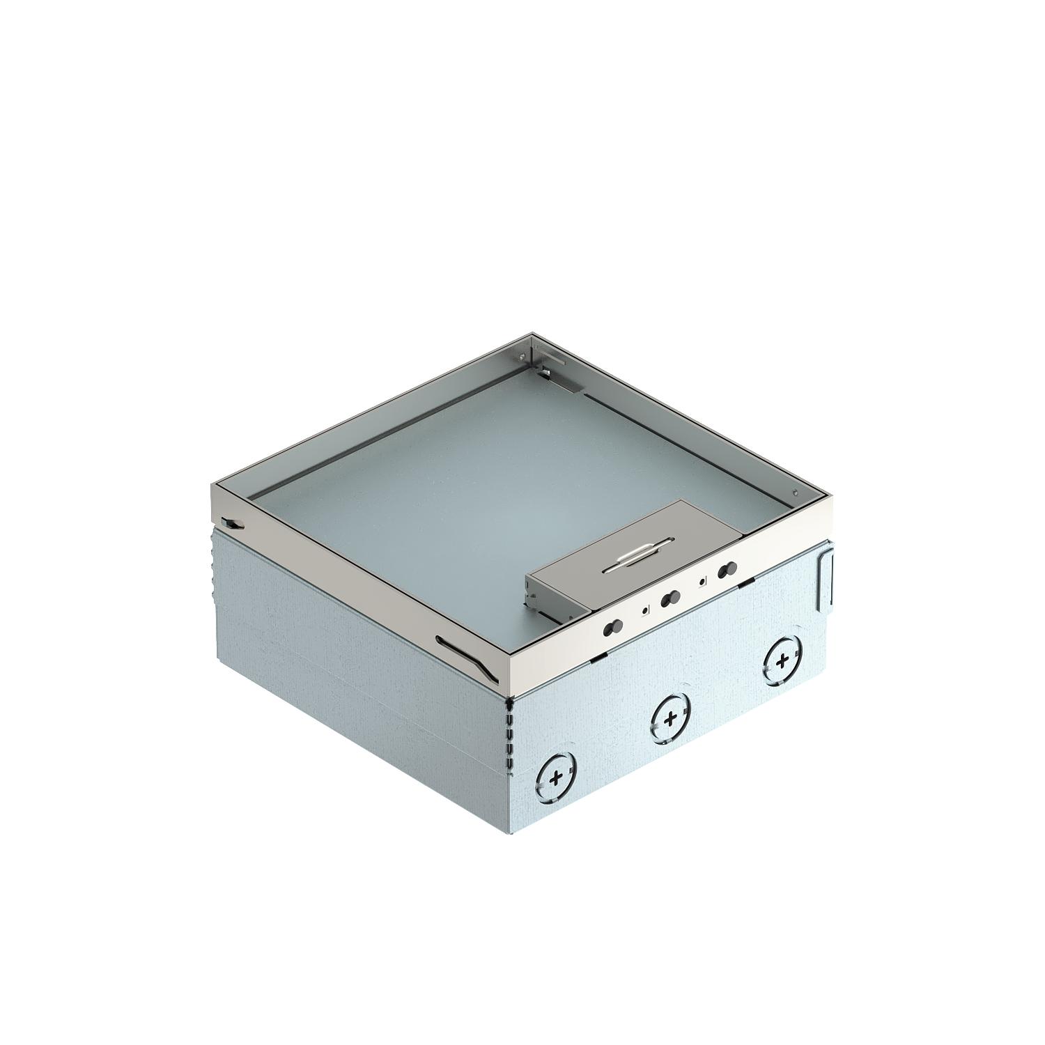 Popis produktuČtvercový přístrojový nástavec pro použití v dutých podlahách se suchou údržbou a podlahách z mazaniny v interiéru. Vestavné pouzdro s předlisovanými přívodními otvory pro trubky (M25). Prázdné pouzdro až pro 2× univerzální nosič UT3 až pro 6× instalační přístroj Modul 45®. Vrchní díl nastavitelný pomocí 4 nivelačních podpěr na horní hranu podlahové krytiny. Minimální montážní hloubka je 95 mm, nivelovaná plocha + 30 mm.
