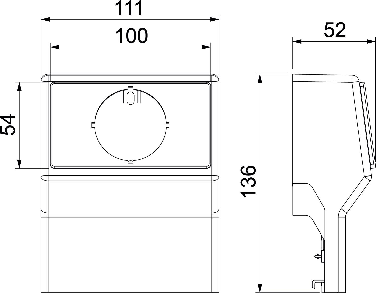 Bezhalogénový nie CO2 stopa (GWP) od kolísky po bránu 0,4135 kg CO2e / 1 Kus Dekorácia bez Dĺžka 52 mm Farba čisto biela; RAL 9010 Materiál Polyvinylchlorid Osadenie bez Šírka 111 mm Spôsob montáže inštalačného prístroja s centrálnou podložkou Stupeň krytia IP40 Stupeň krytia kód IK IK06 Teplotný rozsah použitia max. 60 °C Teplotný rozsah použitia min. -5 °C Výška 136 mm  - Všetky typy