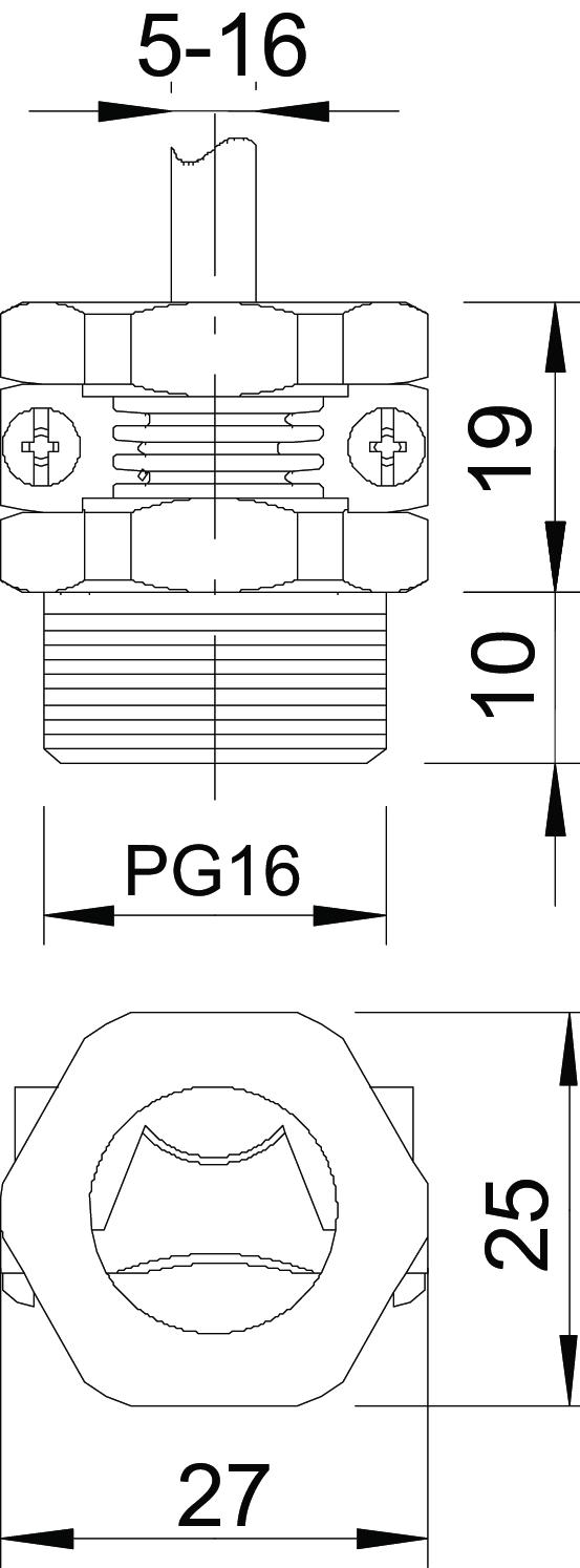 Bezhalogénový áno CO2 stopa (GWP) od kolísky po bránu 0,0391 kg CO2e / 1 Kus Druh závitu Pg Farba svetlosivá; RAL 7035 Materiál Polyamid Menovitá veľkosť závitu 16 Možnosť odľahčenia od ťahu áno Nárazuvzdorný nie Rozmer PG16 Rozmer E 27 mm Rozmer L1 10 mm Rozmer L2 19 mm Stúpanie závitu 1,41 mm Upínací rozsah max. 16,2 mm Upínací rozsah min. 5 mm Veľkosť kľúča 25 Vystužený skleným vláknom nie - Všetky typy