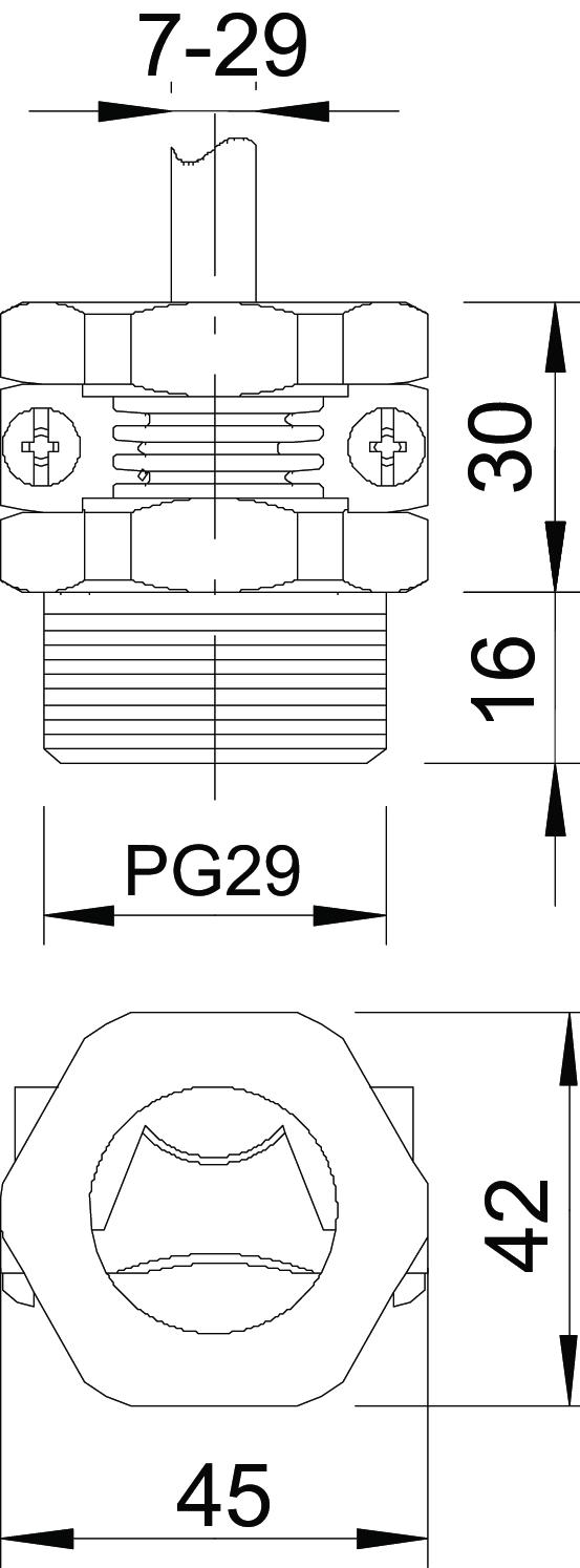 Bezhalogénový áno CO2 stopa (GWP) od kolísky po bránu 0,1505 kg CO2e / 1 Kus Druh závitu Pg Farba svetlosivá; RAL 7035 Materiál Polyamid Menovitá veľkosť závitu 29 Možnosť odľahčenia od ťahu áno Nárazuvzdorný nie Rozmer PG29 Rozmer E 45 mm Rozmer L1 16 mm Rozmer L2 30 mm Stúpanie závitu 1,59 mm Upínací rozsah max. 29 mm Upínací rozsah min. 7,1 mm Veľkosť kľúča 42 Vystužený skleným vláknom nie - Všetky typy
