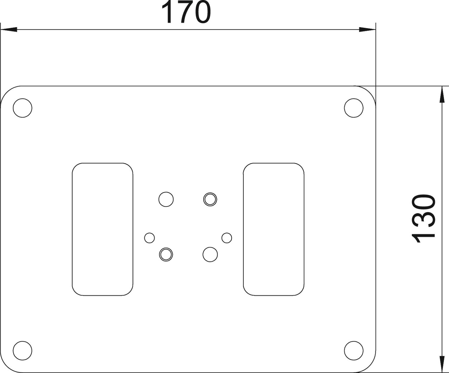 Popis produktuPodlahová doska s viditeľným, 30 mm okrajom a 4 upevňovacie otvory Ø 8,5 mm. Podlahová doska sa hodí na montáž inštalačných stĺpov typu ISS70110.