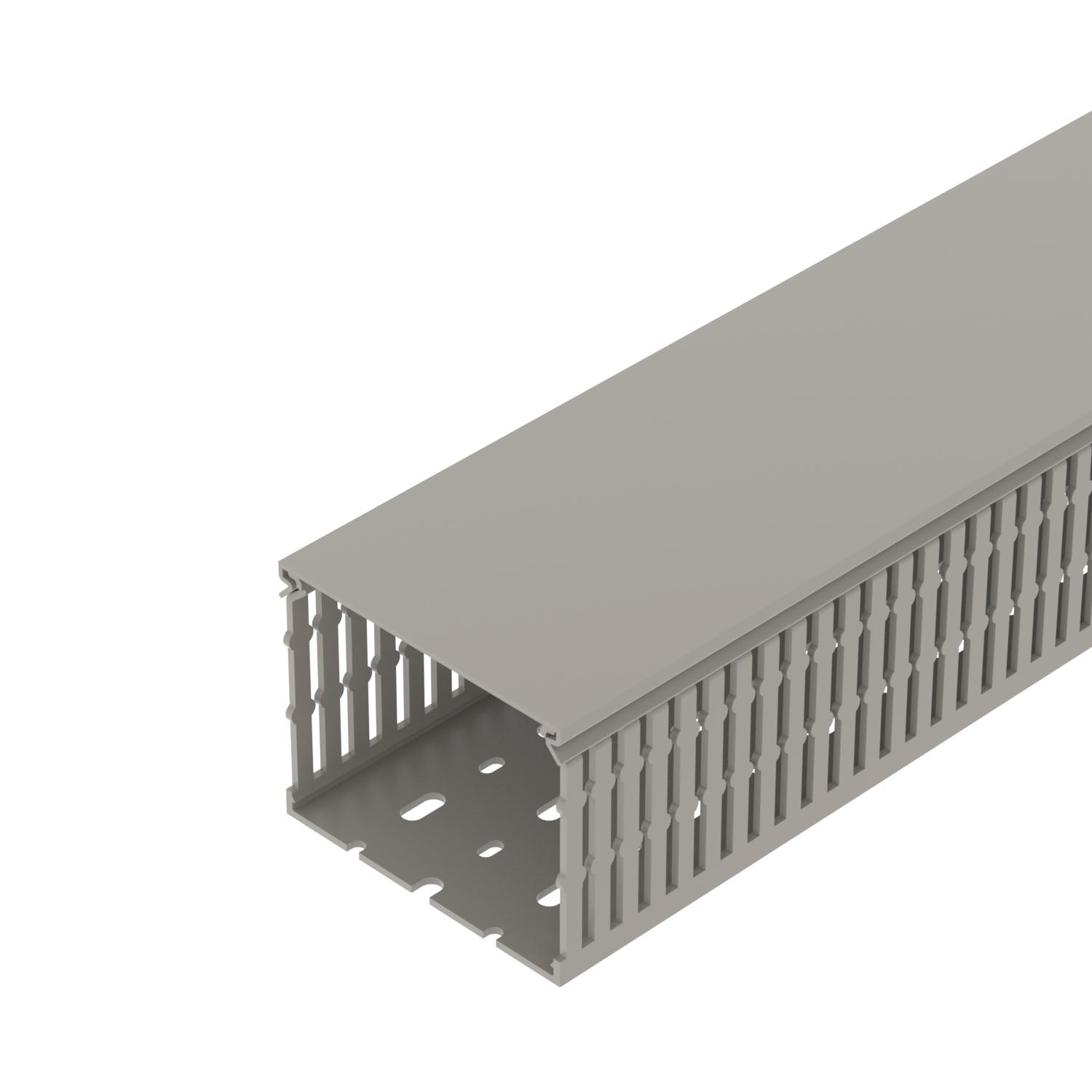 Bezhalogénový nie Dĺžka 2000 mm Farba kamenná sivá; RAL 7030 Flexibilný nie Materiál Polyvinylchlorid Odolný proti plazivému prúdu áno Odstup drážok 5,5 mm S horným dielom áno Samozhášavý áno Šírka 100 mm Šírka drážok 4,5 mm Spôsob upevnenia Dierovanie dna Teplotný rozsah použitia max. 60 °C Teplotný rozsah použitia min. -5 °C Úžitkový prierez 71,7 cm² Vyhotovenie bočnej steny so zárezmi Výška 80 mm  - Všetky typy