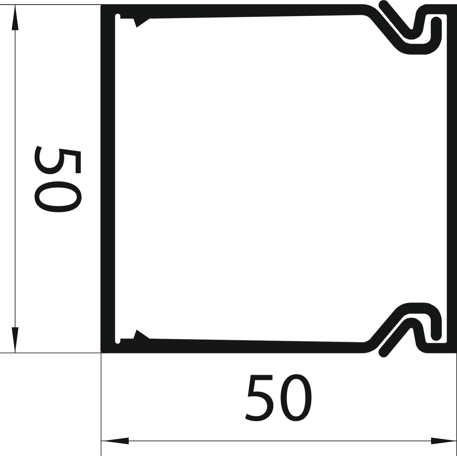 Dĺžka 2000 mm Farba svetlosivá; RAL 7035 Materiál Polykarbonát/akrinitril butadién styrén Šírka 50 mm Teplotný rozsah použitia max. 90 °C Teplotný rozsah použitia min. -25 °C Úžitkový prierez 19,04 cm² Výška 50 mm  - Všetky typy