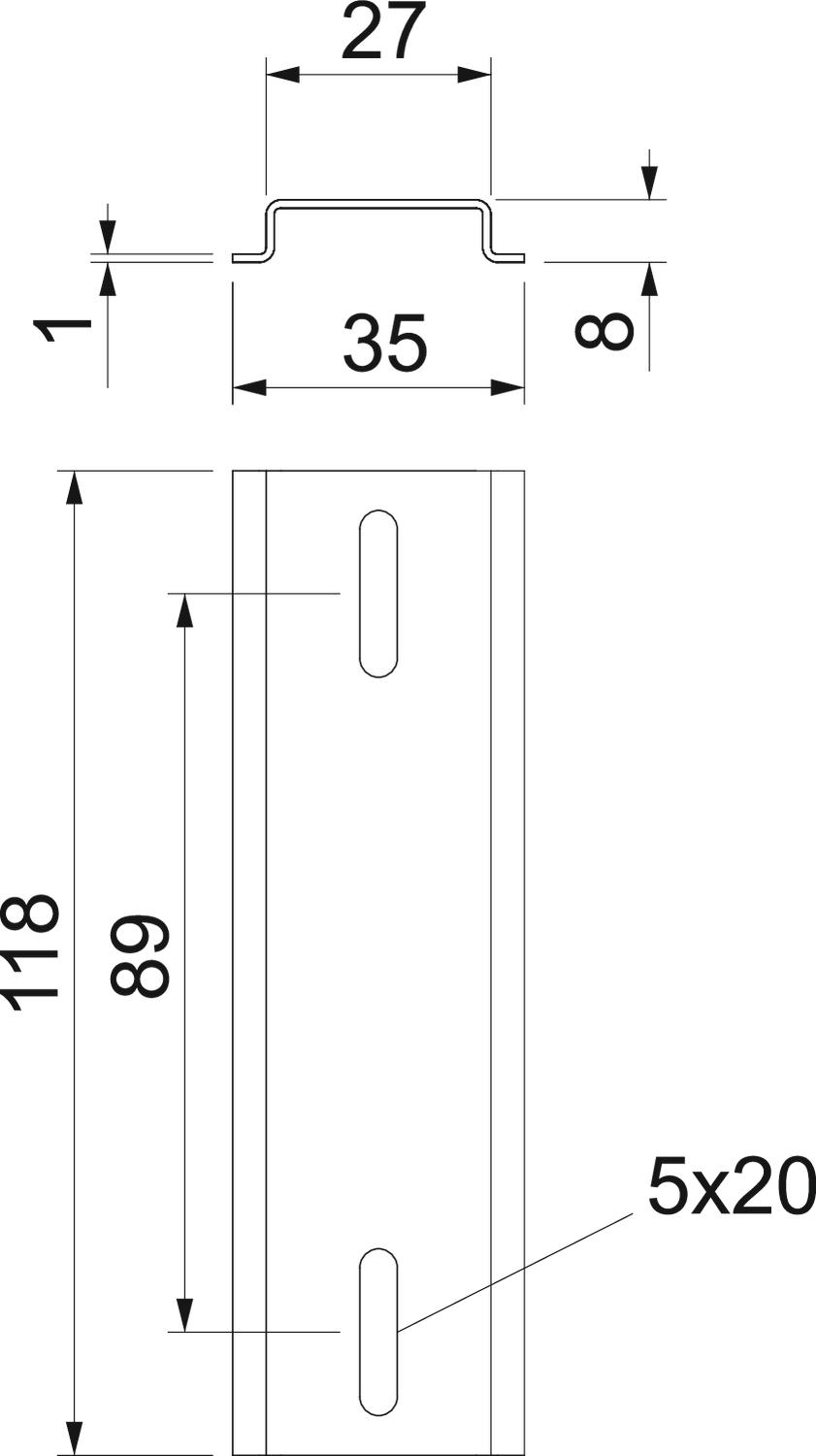 CO2 stopa (GWP) od kolísky po bránu 0,166 kg CO2e / 1 Kus Dĺžka 118 mm Rozmer 119x35x7,5 Šírka 35 mm Vyhotovenie lišty Nosná lišta DIN EN 60715 Výška 8 mm - Všetky typy