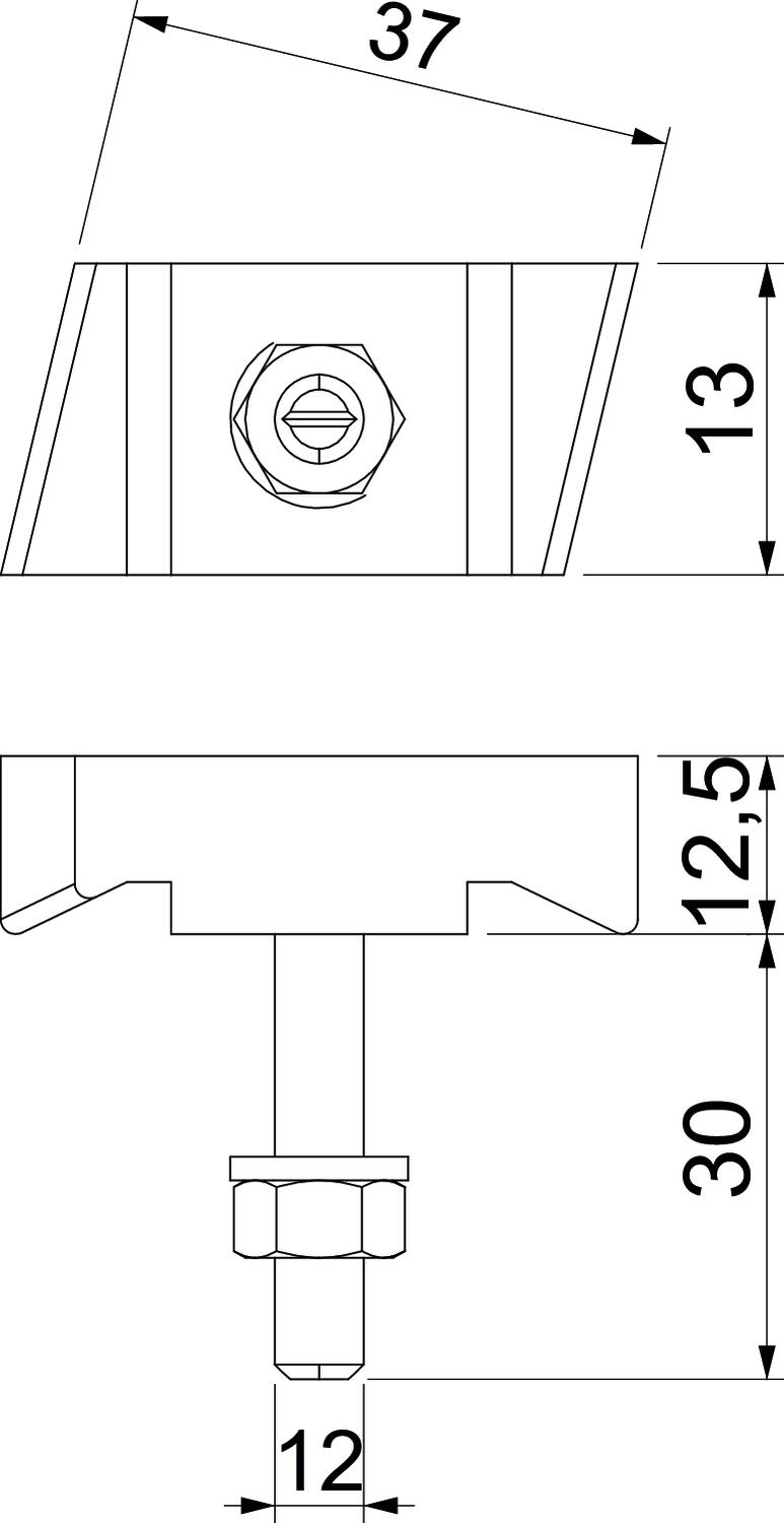 CO2 stopa (GWP) od kolísky po bránu 0,2296 kg CO2e / 1 Kus Dĺžka 43,3 mm Materiál Oceľ Metrický závit 12 Povrch Zinková lamela Rozmer M12x30mm Šírka 13 mm Vhodné pre montážnu lištu áno Výška 10 mm Závit M12x30mm - Všetky typy