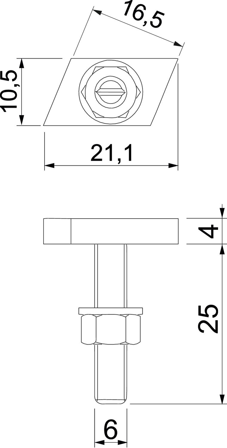 CO2 stopa (GWP) od kolísky po bránu 0,0121 kg CO2e / 1 Kus Dĺžka 21,1 mm Materiál Oceľ Metrický závit 6 Povrch Zinková lamela Rozmer M6x25mm Rozmer L 25 mm Šírka 10,5 mm Vhodné pre montážnu lištu áno Výška 4 mm Závit M 6 x 25mm - Všetky typy