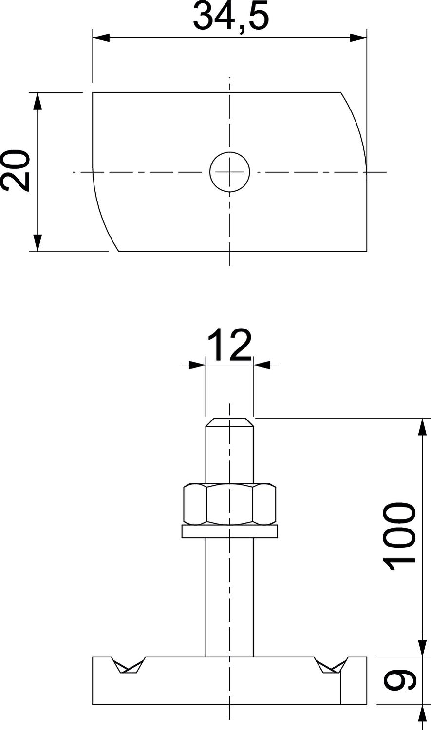 CO2 stopa (GWP) od kolísky po bránu 0,4223 kg CO2e / 1 Kus Dĺžka 34,5 mm Materiál Oceľ Povrch Zinková lamela Rozmer M12x100mm Rozmer H 9 mm Rozmer L 100 mm Šírka 20 mm Uťahovací moment 27 Nm Vhodné pre montážnu lištu áno Výška 9 mm Závit M 12 x 100 Ø podložky 24 mm - Všetky typy