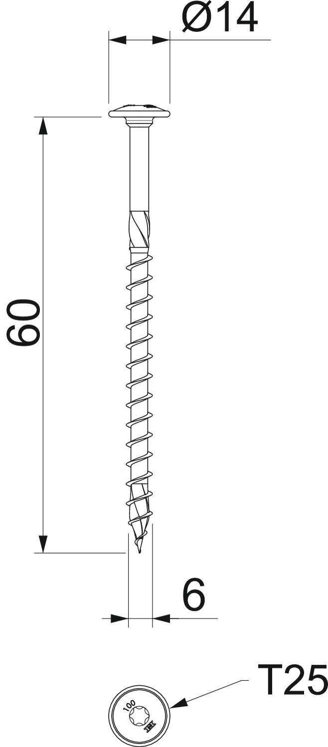 Dĺžka 60 mm Dvojcestný nie Farba pozinkováno Materiál Oceľ Povrch galvanicky zinkované Priemer hlavy 14 mm Priemer stĺpika 4,5 mm Rozmer 6x60 Rozmer D 6 mm Rozmer L 60 mm Skrutkový systém Torx Tvar hlavy Tanierová hlava tvrdený áno - Všetky typy