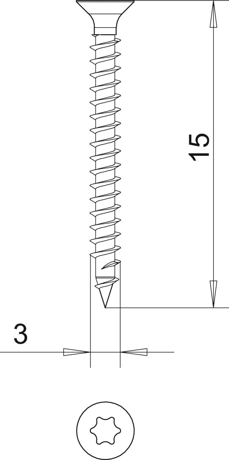 Dĺžka 15 mm Materiál Oceľ Povrch galvanicky zinkované Priemer hlavy 5,6 mm Rozmer 3x15mm Rozmer D 3 mm Rozmer L 15 mm Skrutkový systém Torx Tvar hlavy Zápustná hlava tvrdený áno - Všetky typy