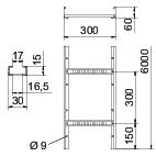 Popis produktuKabelový žebřík s výškou bočnice 60 mm a s přinýtovaným nahoru otevřeným profilem C příčky.