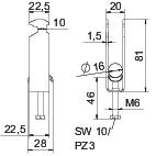 Popis produktuStrmeňová príchytka s pätkou s kladivovou hlavou, kovová prítlačná opierka so zaoblenými hranami na ochranu káblov. Na vertikálnu a horizontálnu montáž 3 samostatných káblov na profilovú lištu C. Pre šírku štrbiny 16 - 17 mm. S 1-závitovou skrutkou na prítlačnej opierke, univerzálna šesťhranná hlava skrutky na veľkosť kľúča 10, s drážkou a krížovou drážkou. Vhodná na montáž vo vnútornom a vonkajšom prostredí. Viacero káblov by sa malo oddeliť dvojitými opierkami. Odporúča sa použitie protiľahlej opierky.