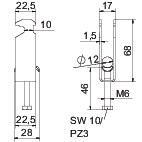 Popis produktuStrmeňová príchytka s pätkou s kladivovou hlavou, kovová prítlačná opierka so zaoblenými hranami na ochranu káblov. Na vertikálnu a horizontálnu montáž 3 samostatných káblov na profilovú lištu C. Pre šírku štrbiny 16 - 17 mm. S 1-závitovou skrutkou na prítlačnej opierke, univerzálna šesťhranná hlava skrutky na veľkosť kľúča 10, s drážkou a krížovou drážkou. Vhodná na montáž vo vnútornom a vonkajšom prostredí. Viacero káblov by sa malo oddeliť dvojitými opierkami. Odporúča sa použitie protiľahlej opierky.