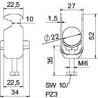 Bezhalogénový áno CO2 stopa (GWP) od kolísky po bránu 0,0942 kg CO2e / 1 Kus Dĺžka 22,5 mm Dĺžka vonkajší rozmer 34 mm Dodatok materiál Oceľ Dodatok povrch žiarivo zinkované Hrúbka plechu 1,5 mm Kvalita materiálu opierky Polypropylén Materiál Oceľ Materiál opierky Plast Max. uťahovací moment 3 Nm Počet káblov/rúr 1 Povrch žiarovo zinkované ponorením pre lištu so šírkou prieseku (s intervalom) max. 17 mm pre lištu so šírkou prieseku (s intervalom) min. 16 mm pre priemer rúrky max. 22 mm pre priemer rúrky min. 16 mm Rozmer 16-22mm Rozmer A 22,5 mm Rozmer B 27 mm Rozmer C 34 mm Rozmer G (mm) M6 Rozmer H 52 mm Rozmer L 35 mm Rozmer t 1,5 mm Rozsah upínania D max. 22 mm Rozsah upínania D min. 16 mm S plastovou vaňou áno S pozdĺžnou opierkou nie Šírka 27 mm Šírka výrezu 10 mm Spôsob montáže Profilová lišta Výška 52 mm Závit M6 - Všetky typy