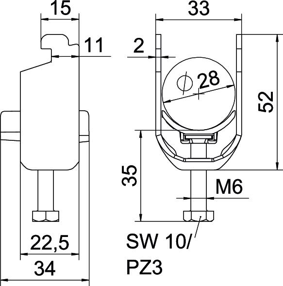 Bezhalogénový áno CO2 stopa (GWP) od kolísky po bránu 0,1167 kg CO2e / 1 Kus Dĺžka 22,5 mm Dĺžka vonkajší rozmer 34 mm Dodatok materiál Oceľ Dodatok povrch žiarivo zinkované Hrúbka plechu 2 mm Kvalita materiálu opierky Polypropylén Materiál Oceľ Materiál opierky Plast Max. uťahovací moment 3 Nm Počet káblov/rúr 1 Povrch žiarovo zinkované ponorením pre lištu so šírkou prieseku (s intervalom) max. 12 mm pre lištu so šírkou prieseku (s intervalom) min. 11 mm pre priemer rúrky max. 28 mm pre priemer rúrky min. 22 mm Rozmer 22-28mm Rozmer A 22,5 mm Rozmer B 33 mm Rozmer C 34 mm Rozmer G (mm) M6 Rozmer H 52 mm Rozmer L 35 mm Rozmer t 2 mm Rozsah upínania D max. 28 mm Rozsah upínania D min. 22 mm S plastovou vaňou áno S pozdĺžnou opierkou nie Šírka 33 mm Šírka výrezu 10 mm Spôsob montáže Profilová lišta Výška 52 mm Závit M6 - Všetky typy