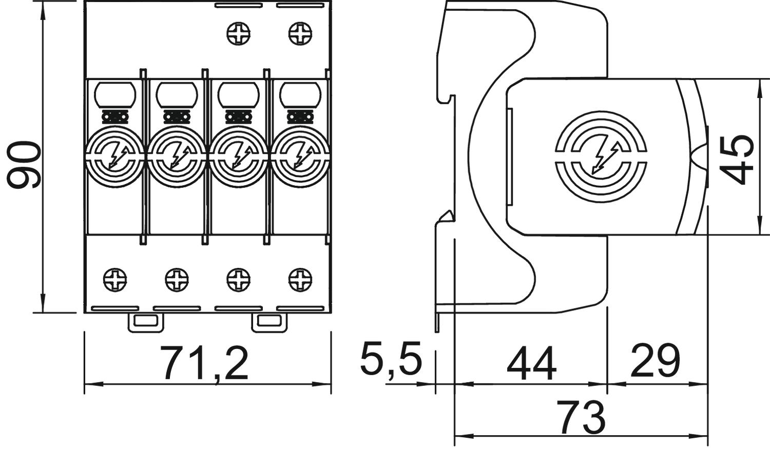 • Modulární vyjímatelný svodič s dynamickým odpojovacím zařízením a optickou signalizací stavu