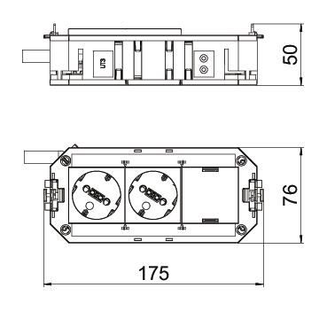 Propojený univerzální nosič UTC3 disponuje 2 bílými předinstalovanými zásuvkami s ochranným kontaktem 33° s proudem 16 A a zaslepovacím krytem pro dodatečnou vestavbu instalačního přístroje řady Modul 45 nebo Modul 45connect.