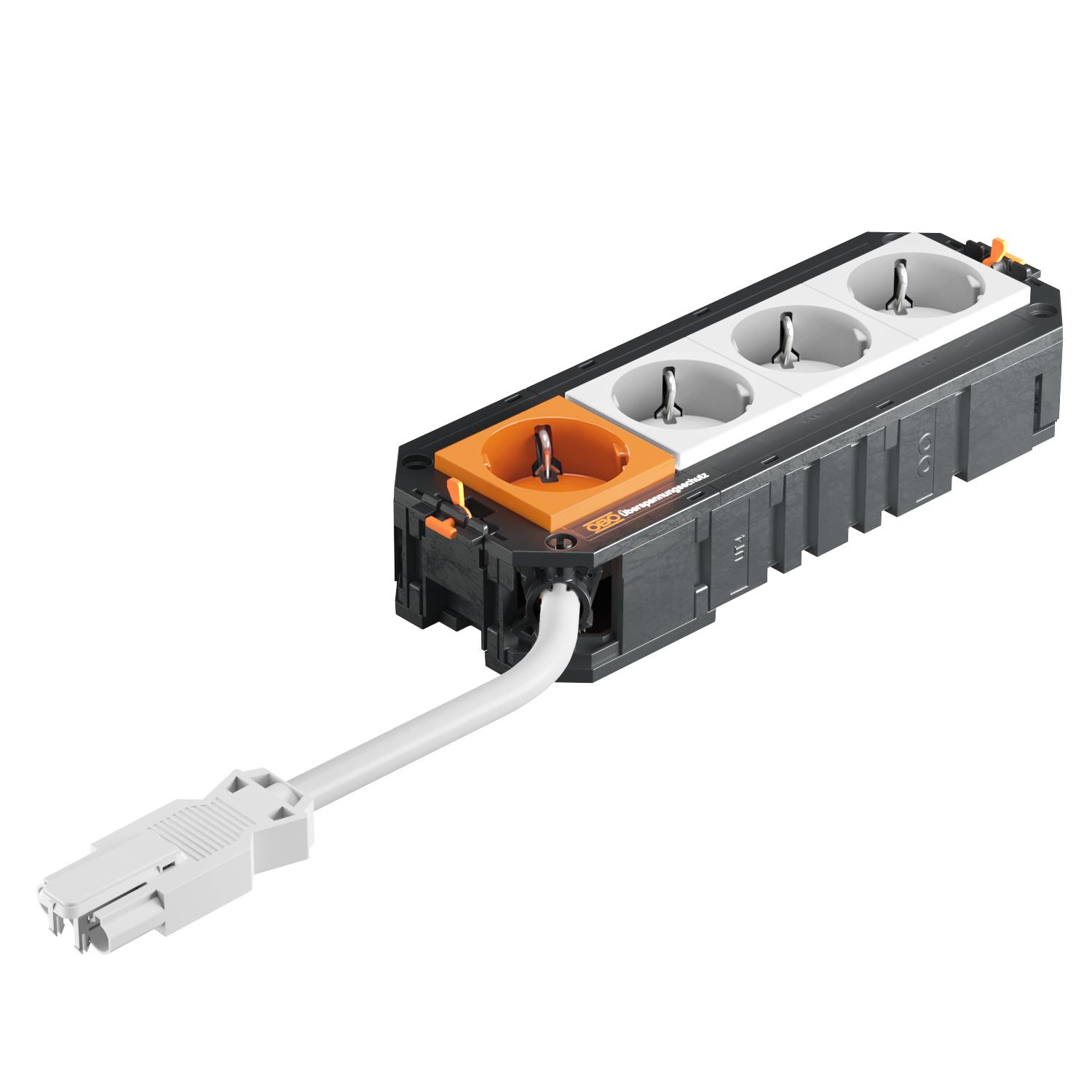 Popis produktuUniverzální nosič UTC4 připravený k připojení s bezhalogenovým připojovacím kabelem. Tři předinstalované zásuvky s ochranným kontaktem 33° v čistě bílém provedení a jedna zásuvka s ochranným kontaktem 33° v provedení čistě oranžová, všechny s proudem 16 A. Zásuvky s ochranným kontaktem v provedení čistě oranžová jsou jištěny modulem přepěťové ochrany typu 3 podle EN 61643-11. Vhodný pro spojovací vedení VL a přístrojové jednotky jmenovité velikosti R7, R9 a 9.