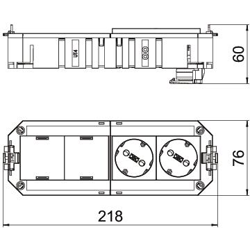Popis produktuPropojený univerzální nosič UTC4 disponuje dvěma předinstalovanými zásuvkami s ochranným kontaktem 33° s proudem 16 A a dvěma zaslepovacími kryty pro dodatečnou vestavbu dvou instalačních přístrojů řady Modul 45 nebo Modul 45connect. Vhodný pro spojovací vedení VL a přístrojové jednotky jmenovité velikosti R7, R9 a 9.