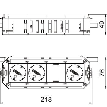 Propojený univerzální nosič UTC4 disponuje 2 oranžovými předinstalovanými zásuvkami s ochranným kontaktem 33°, jednou mátově zelenou předinstalovanou zásuvkou s ochranným kontaktem 33° a zaslepovacím krytem pro dodatečnou vestavbu instalačního přístroje řady Modul 45 nebo Modul 45connect, 250 V~, 16 A.