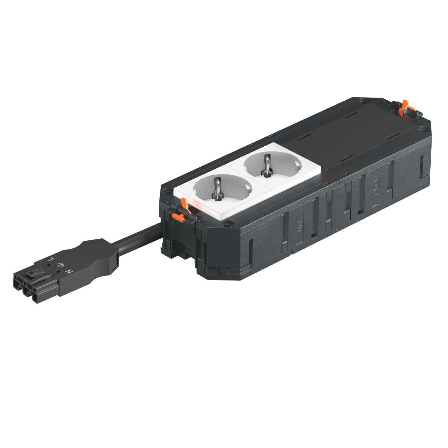 Popis produktuPropojený univerzální nosič UTC4 disponuje 2 bílými předinstalovanými zásuvkami s ochranným kontaktem 33° a 2 zaslepovacími kryty pro dodatečnou vestavbu 2 instalačních přístrojů řady Modul 45. Připojovací vedení PVC s konektory, třípól., Typ WINSTA® MIDI.