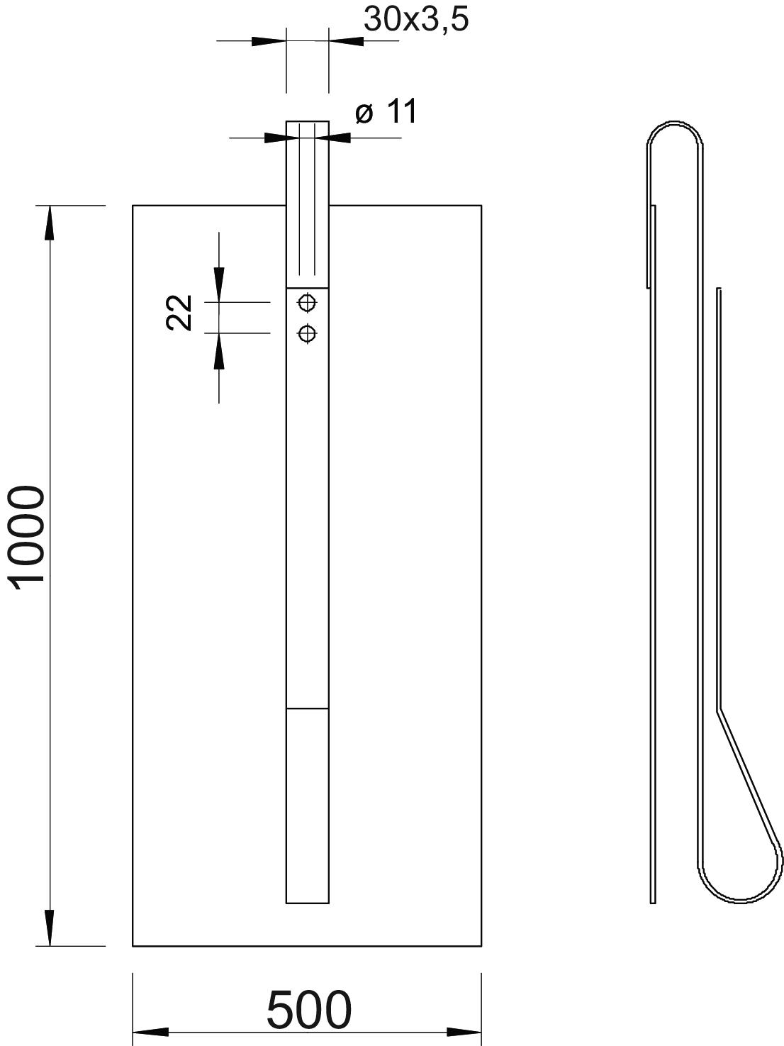 Popis produktu• S 3m vývodem z pásové oceli FL 30 × 3,5