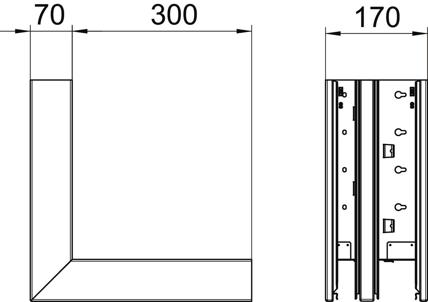 Popis produktuVnější roh pro změnu směru kanálů pro vestavbu přístrojů GS.